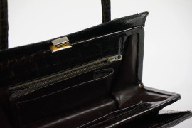 Borsa a mano in lucertola marrone, cm h 28x24x4,5