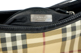 Burberry, borsetta in tela nera con monogram, cm 30,5x25.