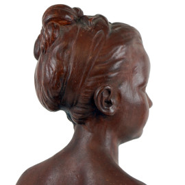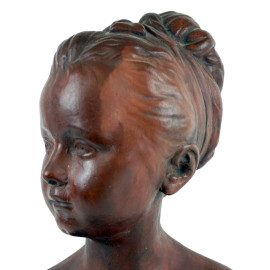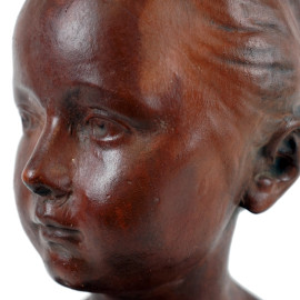 Busto di fanciulla, scultura in terracotta, cm h 35, base in legno, XX secolo, (lievi segni del tempo).