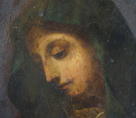Carlo Dolci (1616-1686) Seguace di, Madonna del dito, olio su rame, cm 24x18, entro cornice