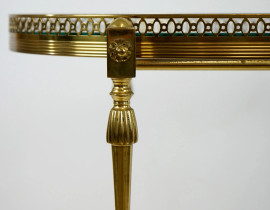 Carrello portavivande e bevande a due ripiani in vetro ed ottone, ringhiere traforate, cm h 77x46x72, (segni del tempo).
