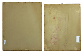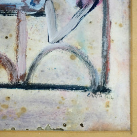 Senza titolo, lotto di due dipinti a tecnica mista su carta, misure max cm 29x22, entro cornici, (difetti).