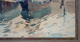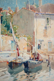 Canale di Venezia con barche, acquarello su carta, cm 23x14, entro cornice