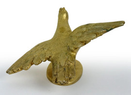 Colomba, multiplo in bronzo dorato, ES. 54/300, cm h 11,5x16x20, firmato Giacomo Manzù.