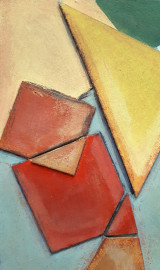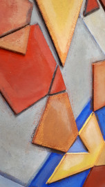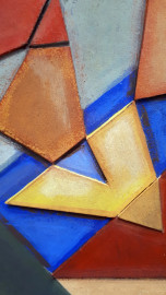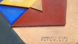 Composizione futurista, tecnica mista e rilievi su cartone, cm 28x20, firmato