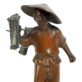 Contadino cinese, scultura in bronzo, cm h 25, XX secolo