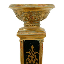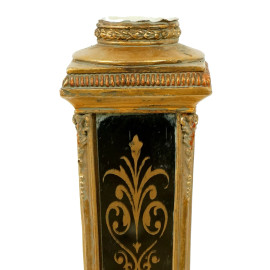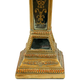 Coppia di alzatine in resina dorata con fusto specchiato, cm h 30,5, XX secolo, (difetti e mancanze).