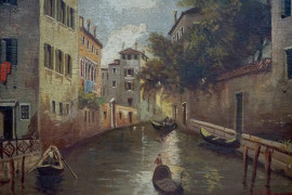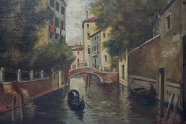 Coppia di scorci di Venezia, olio su tavola, cm 28x39, firmati, entro cornici.