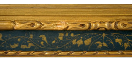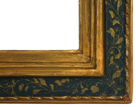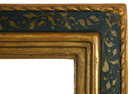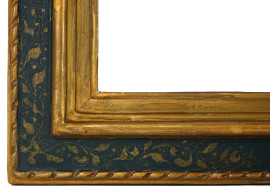 Cornice in legno intagliato, dorato e dipinto, inizi XX secolo, misure ingombro cm 78x58, misure luce cm 66x47, (segni del tempo).