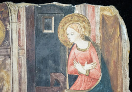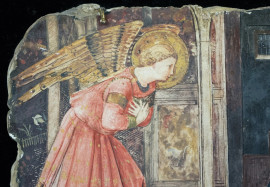 Da Beato Angelico, Annunciazione, riproduzione in gesso, cm h 17x24, XX secolo, (difetti).