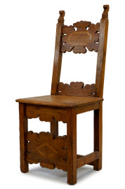 Dodici sedie in noce, XVIII secolo, schienale traforato e particolari scolpiti, cm h 112,5, (difetti).
