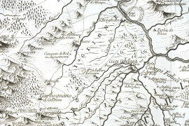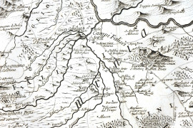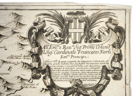 Domenico De Rossi, Frammento di carta geografica dell'Alto Lazio, cm 41,6x58,5, con dedica al Cardinal Francesco Nerli