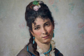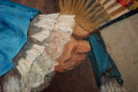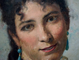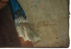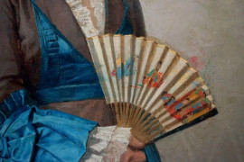 Donna con ventaglio, olio su tela, cm 99,5x74, firmato E.Tofano.