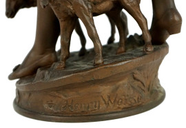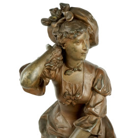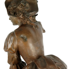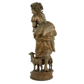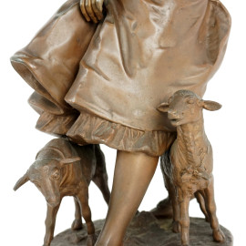 Fanciulla con due pecorelle, scultura in antimonio, cm h 56,5, firmata Herny Weisse (XIX-XX secolo)