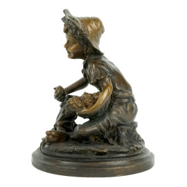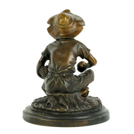 Fanciullo seduto con cesta di frutta, scultura in antimonio, cm h 16,5, XX secolo.