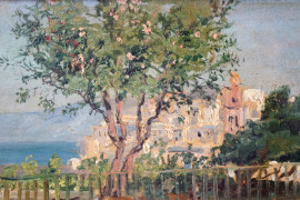 Paesaggio costiero, olio su cartone, cm 22x30, entro cornice