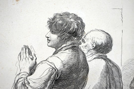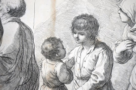 Francesco Bartolozzi (1727-1815), In preghiera, da Guercino, acquaforte, cm 37x47, (difetti sulla carta)