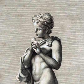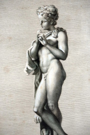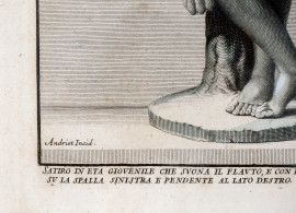 Francois Andriot (1655-1704), Satiro in età giovanile che suona il flauto, incisione, cm 30x19, entro cornice