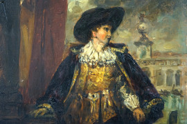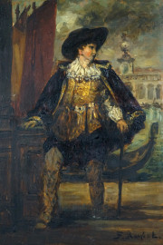 Gentiluomo veneziano, olio su tavola, cm 24x17, firmato, (lievi difetti).