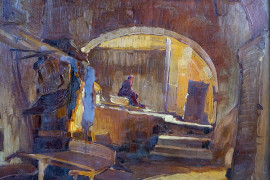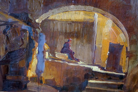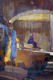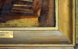 Scorcio con figura, olio su tavoletta, cm 22,5x31,5, entro cornice