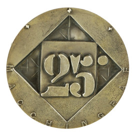 Giò Pomodoro, medaglia commemorativa del 25° anniversario Società Macchingraf 1989, diam. cm 8, (segni del tempo).