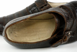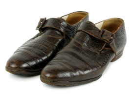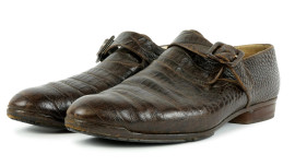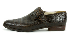 Giorgio Armani, mocassini in coccodrillo marroni con fibbia, numero 37, (segni di utilizzo).