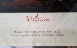 Giorgio De Chirico, Verso la luce, litografia limitata a 150 esemplari numerati, manifesto realizzato per l’anno santo 1975, esemplare n. 46/150, cm 80x56, con cornice