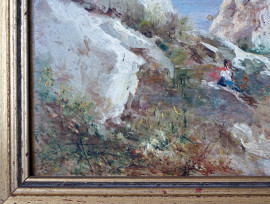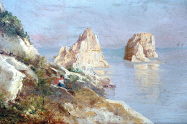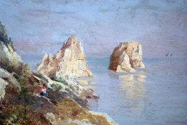 I Faraglioni, olio su tavola, cm 14,5x24, firmato F.Mancini, entro cornice.