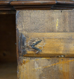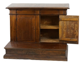 Inginocchiatoio in noce , Cortona, Toscana, XVIII secolo, filettatura in acero, due sportelli, cm h 90,5x115x70, (segni del tempo).