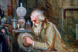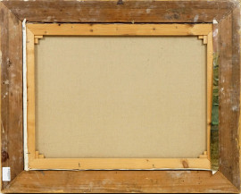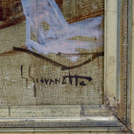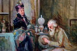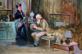 Interno con gentildonna ed anziano, olio su tela, cm 60x80, firmato G.Giovanetti, entro cornice.