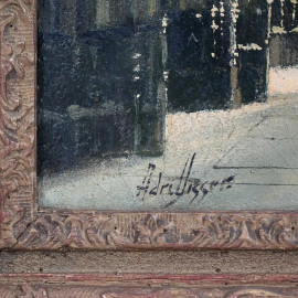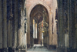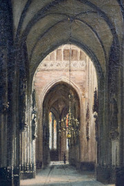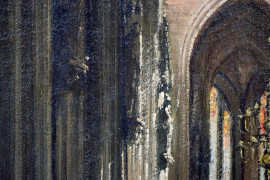 Interno di cattedrale, olio su tela, cm 60x50, firmato, entro cornice