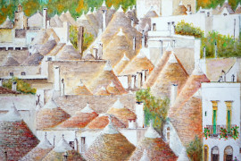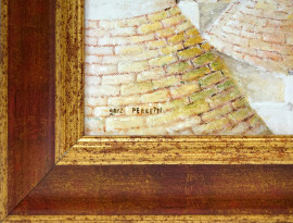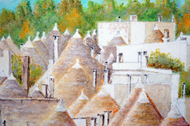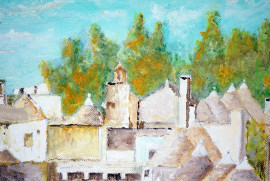 Italo Perretti (XX sec.), Alberobello, olio su tela, cm 60x60, entro cornice