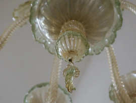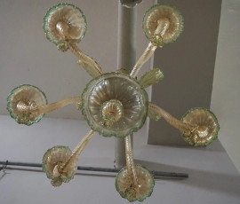 Lampadario in vetro di Murano a sei luci, cm h 65 circa, (difetti e mancanze).