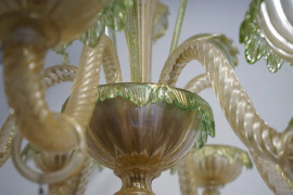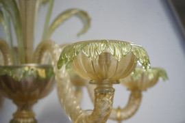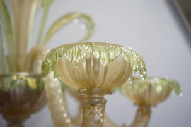Lampadario in vetro di Murano a sei luci, cm h 65 circa, (difetti).