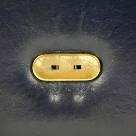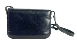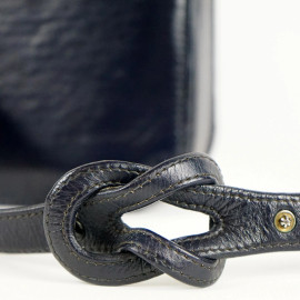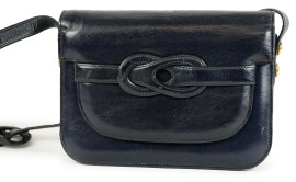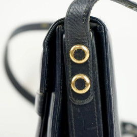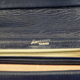 Laurence Torino, borsa a tracolla blu, interno a vari scomparti, finiture in metallo dorato, cm 18x23x5, lunghezza tracolla cm 38, (segni di utilizzo).