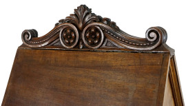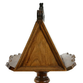 Leggìo in noce, fusto a balaustro poggiante su alto plinto modanato, cm h 135x36x33, (difetti)