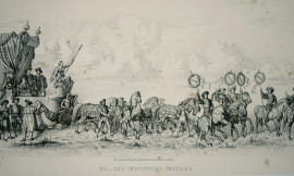 Les industries textiles, antica stampa viennese, cm 13x33,5, entro cornice