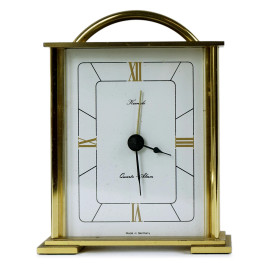 Lotto composto da cinque orologi da tavolo in argento, metallo argentato e dorato, ingombro max cm 18,5x14,5x6, XX secolo, (difetti).