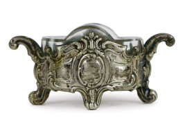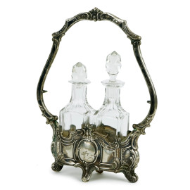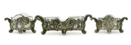 Lotto composto da set olio e aceto e tre salierine in argento, ampolle e vaschette in vetro, inizi XX secolo, peso gr. 120