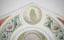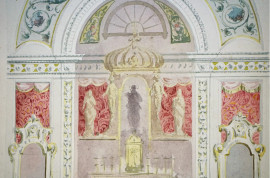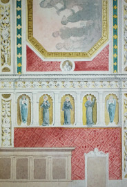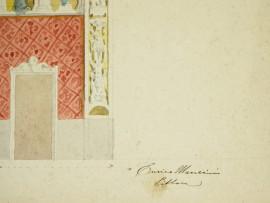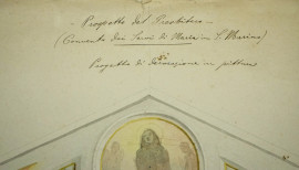Lotto composto da tre bozzetti raffiguranti progetti di decorazioni pittoriche per il Convento dei Servi di Maria in S. Marino, acquarello su carta, cm 30x23, firmati