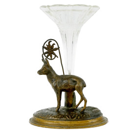 Lotto composto da un vaso in vetro con base in metallo brunito raffigurante capretta ed un'alzatina in bronzo, alt. max cm 24, XX secolo, (difetti).