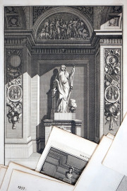 Lotto di 38 incisioni del XVIII secolo a soggetti diversi, cm 38,5x24