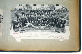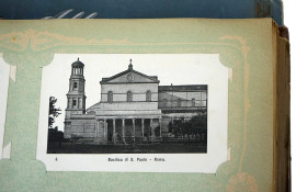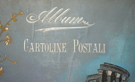 Lotto di due album contenenti collezioni di cartoline postali a soggetti diversi, ingombro max cm 6,5x37,5x27, XX secolo, (difetti).