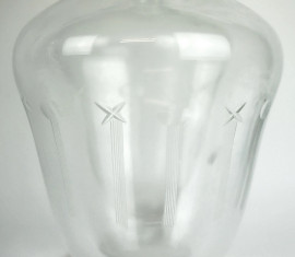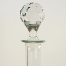 Lotto di quattro bottiglie in vetro, tappi in cristallo, cm h 32, XX secolo.