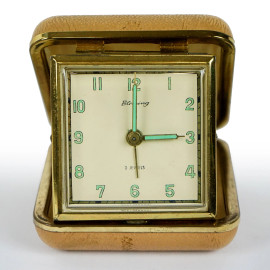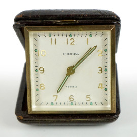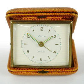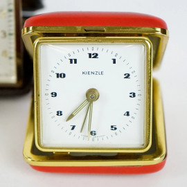 Lotto di quattro orologi da viaggio, marche e materiali diversi, misure max cm 7x9, XX secolo, (difetti e meccanismi da revisionare).