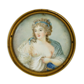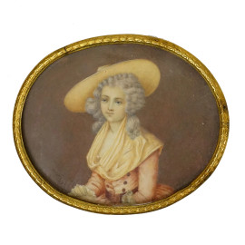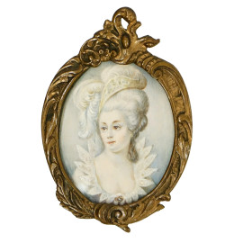 Lotto di tre miniature ad assetto ovale raffiguranti nobildonne, misure max cm 8x9,5, XVIII secolo, entro cornici.