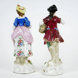 Lui e Lei, coppia di sculture in porcellana policroma, marcate Capodimonte, cm h 18,5.