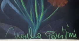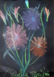 Novella Parigini (1921-1993), Composizione floreale, gessetti policromi su cartoncino nero, cm 70x50, firmato con cornice