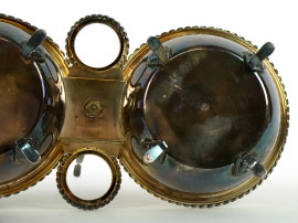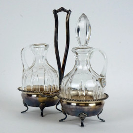 Olio e aceto in argento, ampolle in vetro, cm h 20, peso gr. 298, (mancante un tappo)