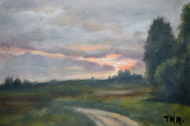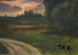 Paesaggio al tramonto, acquarello su carta, cm 14x21,5, siglato, (lievi difetti).